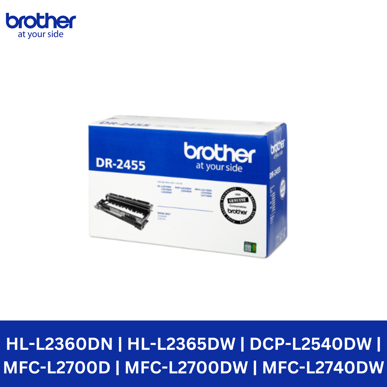 Item: Original Brother Drum DR-2455 Page Yield: 12,000 Pages Hardware Compatibility: HL-L2360DN | HL-L2365DW | DCP-L2540DW | MFC-L2700D | MFC-L2700DW | MFC-L2740DW ** Page yield is based on 5% page coverage (ISO Standard)
