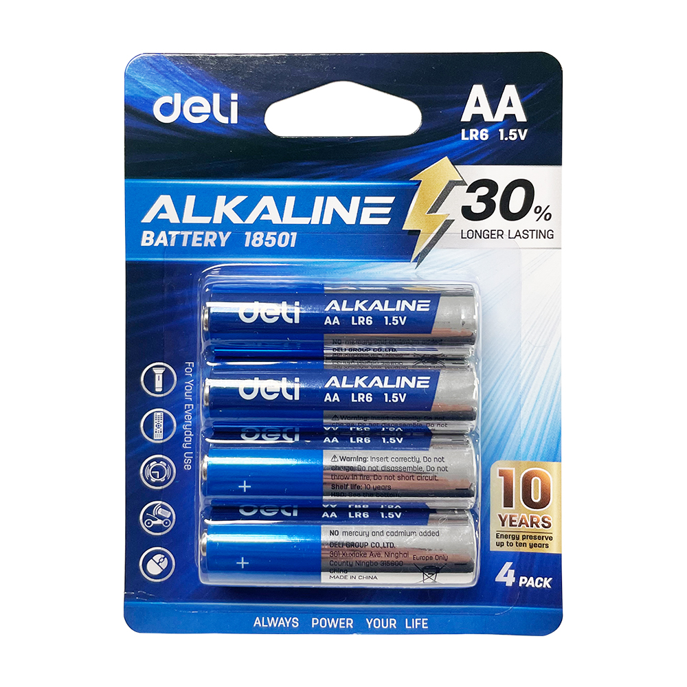 4pcs of AA alkaline battery in one card. Suitable for household usage with its long-lasting power