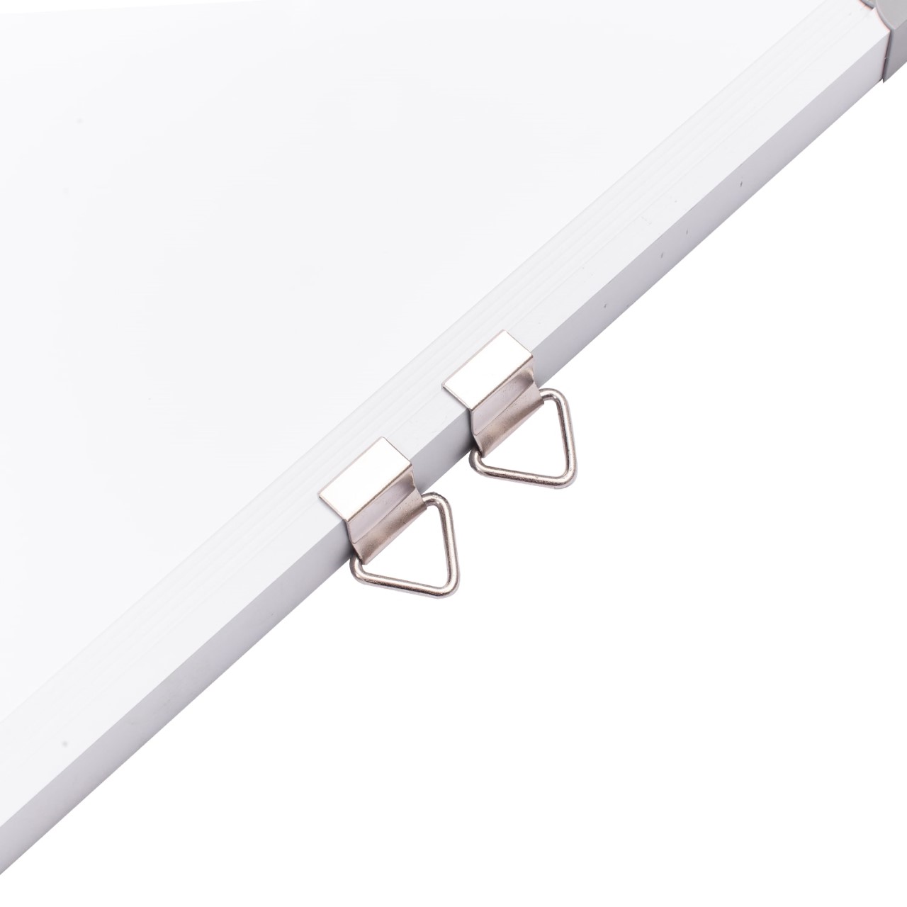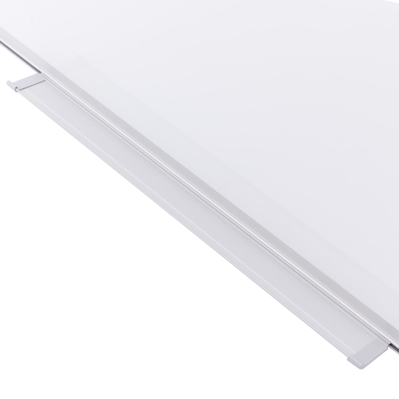 | Magnetic whiteboard with foldable pen tray, aluminium frame with ABS corners and sliding mounting parts for variable mounting point. |