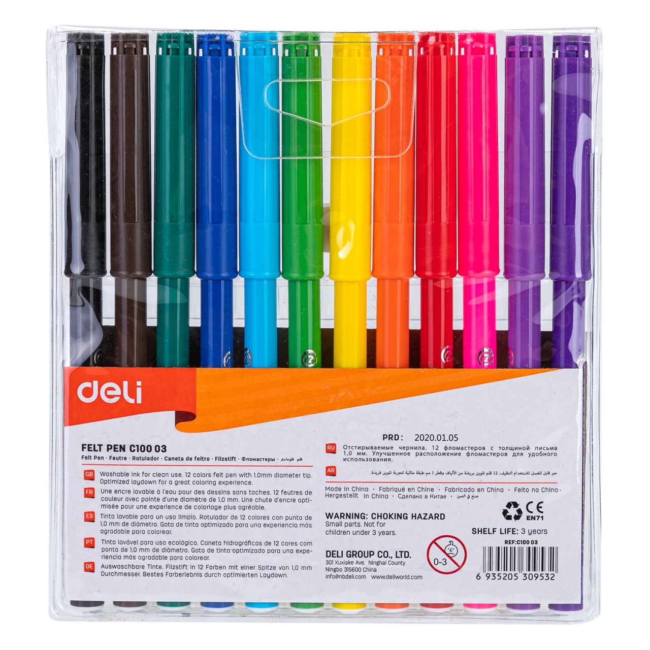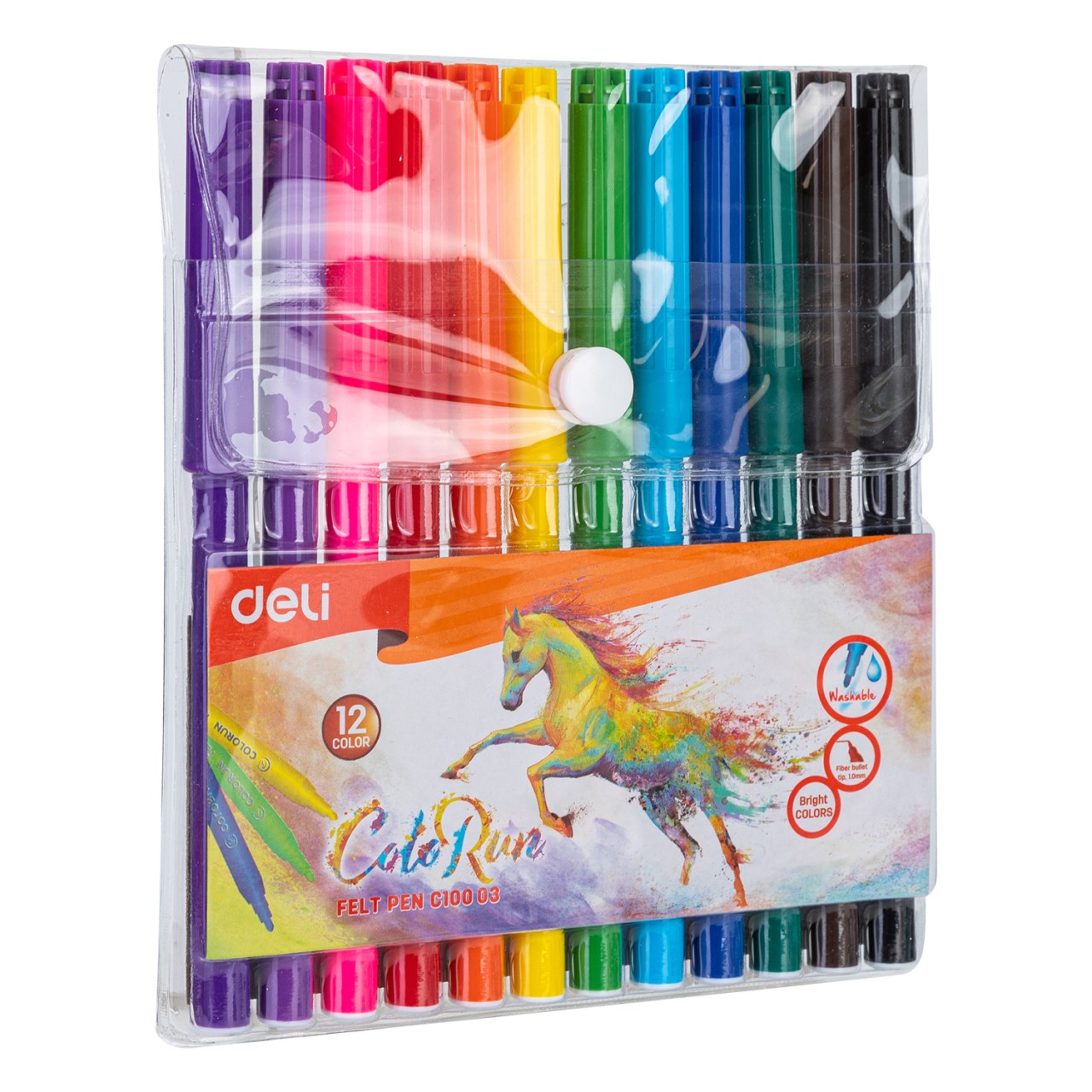 Deli EC10003 Washable Felt Pen (12 Colour Set)