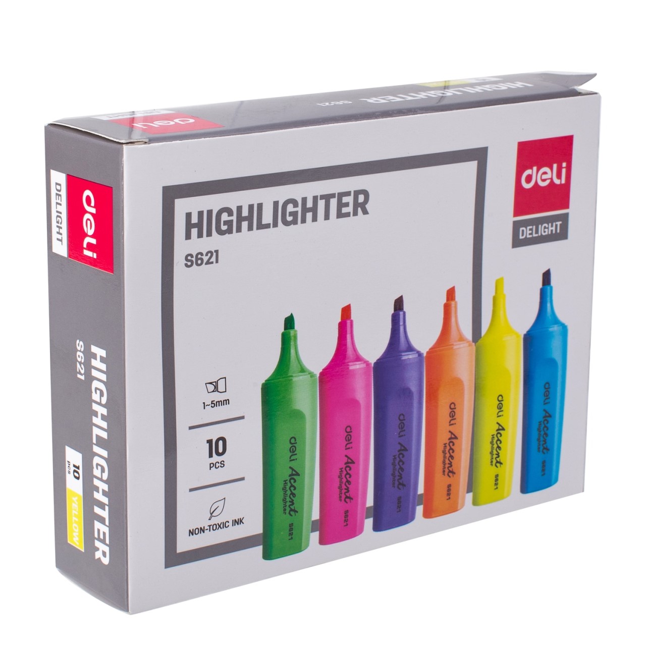 Middle size highlighter with pen clip, providing the smoothest writing and drawing experience Chisel 1-5mm, PP, felt tip 6 colors to choose : Yellow, Green, Pink, Orange, Blue, Purple Specialize for school, office and home usage
