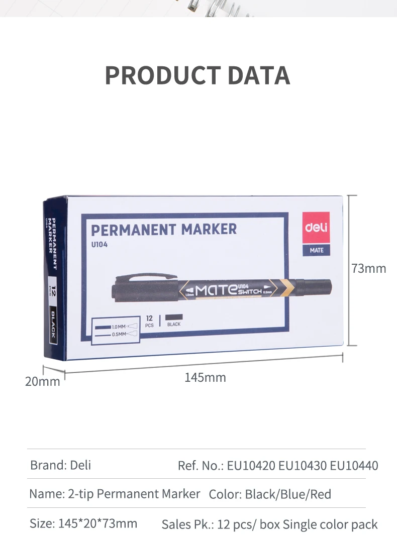Deli Dual Tips Permanent Marker (Box of 12pcs)