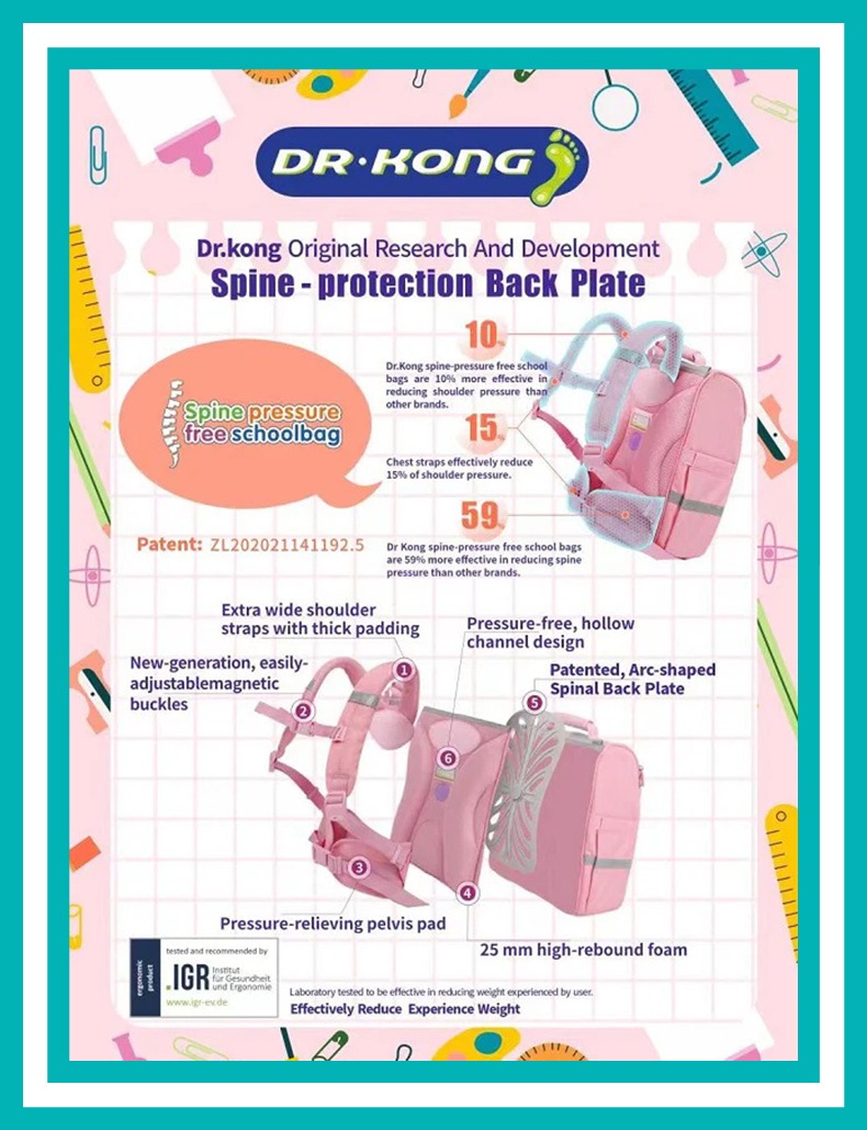 - Waist Belt: helps to reduce the part of the weight of the school bag by transferring it to the pelvis, reduces pressure on the shoulder