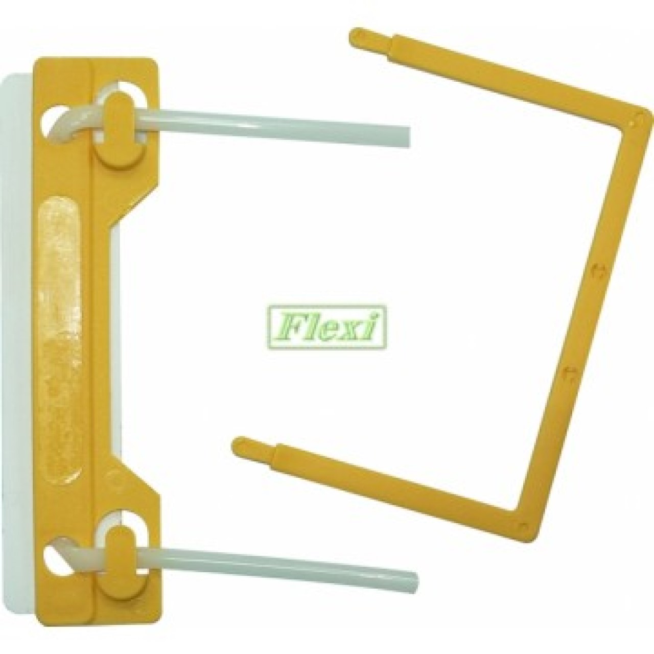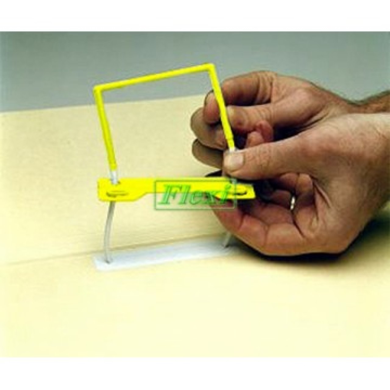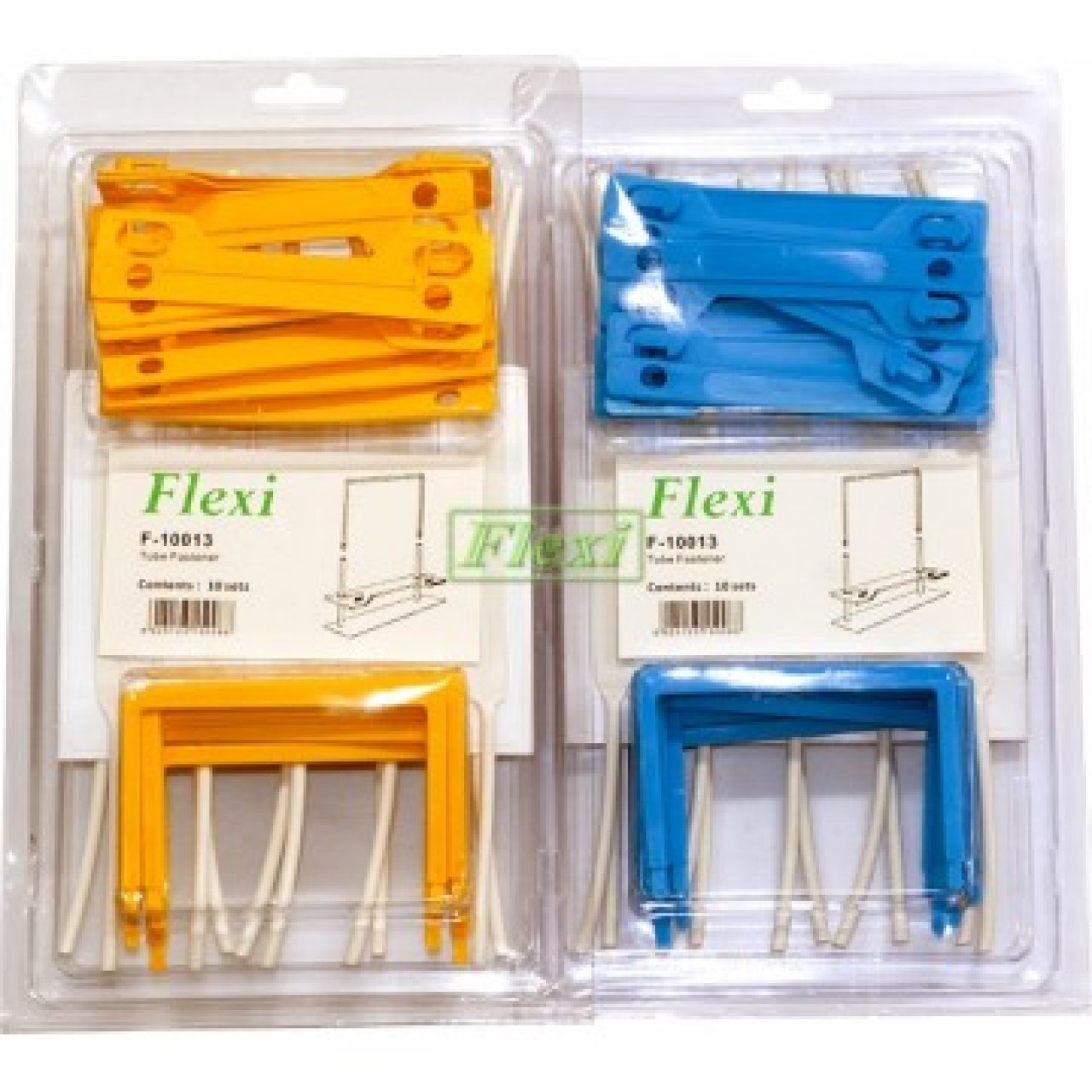 This is a blister-pack of 10 sets of tube fastener consisting of 3 components. The base component is a stick-on base for the 2-forks (whereby it will anchor the base of the 2-prong fork to the file/folder), follows by the holder and finally the U-shape capping stick, all of which are made of plastic. Colour available is either blue or yellow.