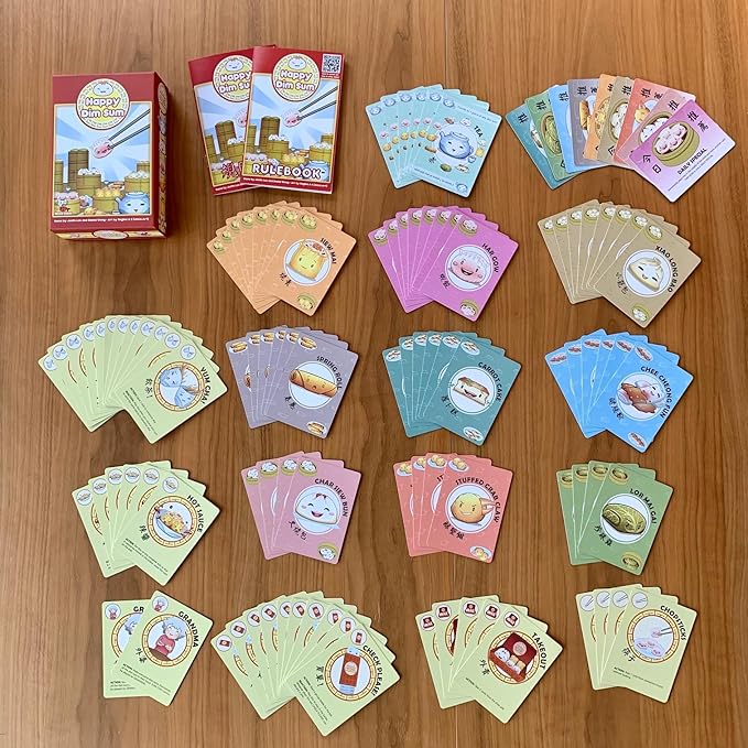 Happy Dim Sum is a 2 to 5 player game where you draw Dim sum and Action cards and pass the dim sum in your hand to your friends, trying to help them complete their sets. Once a player completes 3 different sets and the relevant Daily Special cards are drawn from the deck, the players are eliminated. Make use of action cards to move the Dim Sum around and survive the Dim Sum stuffing till the last man standing!