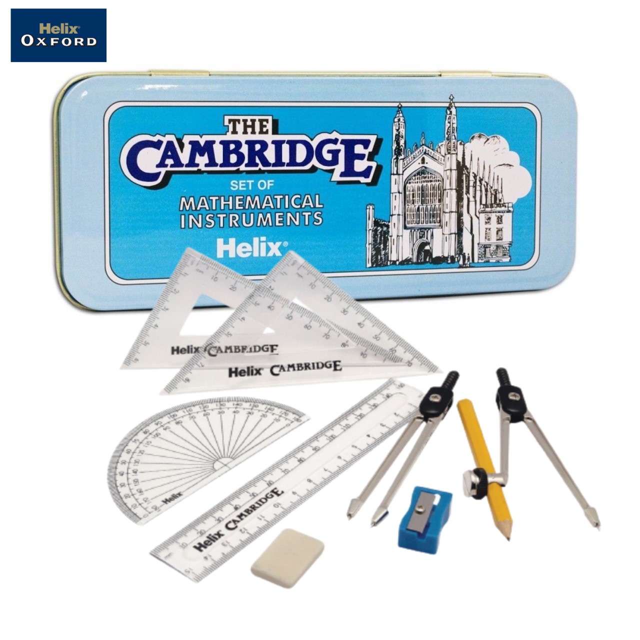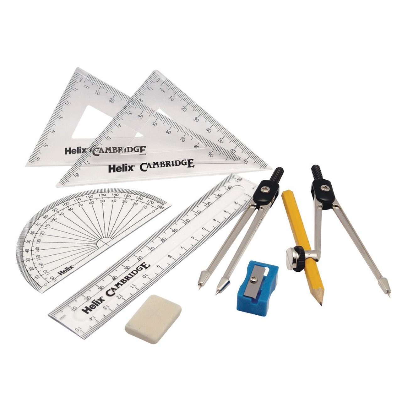 Helix Cambridge Maths Sets B44000 9 piece maths set, Part of the Helix Cambridge range Perfect for school children or students studying a range of subjects including maths, geometry, trigonometry and design and technology.