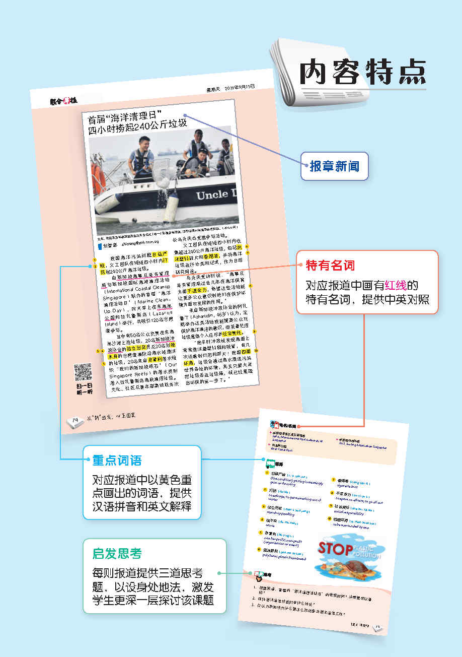 - Junior is a carefully curated series of newspaper articles sourced from Lianhe Zaobao, Lianhe Wanbao and Shin Ming Daily News. Each book contains 45 selected articles that are suitable for primary students' daily reading, and each article is paired with vocabulary learning and questions to stimulate deeper understanding of the topic.