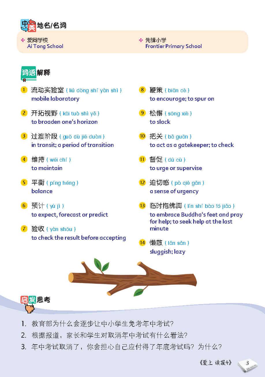 看报可以让我们知道天下大小事, 除了丰富知识, 还能提升语文水平.《我爱读报》是一本精选本地三大报章《联合早报》,《联合晚报》,《新明日报》富趣味性和可读性的新闻, 让学生在轻松的心态下阅读, 通过《我爱读报》,加强听力与写作能力.