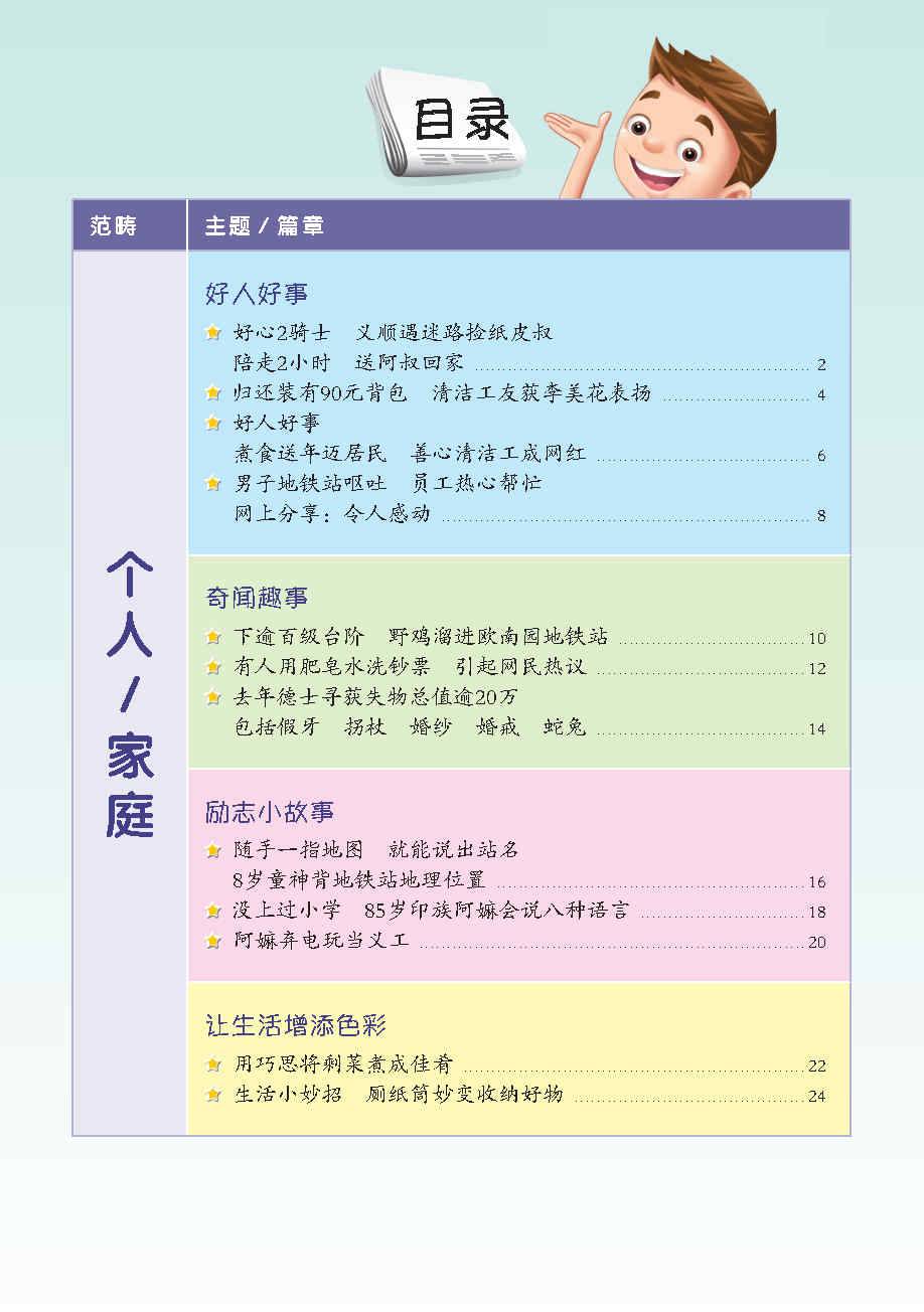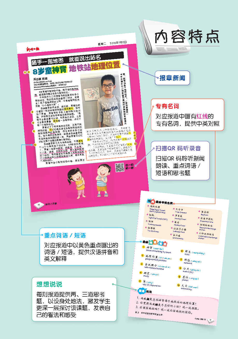 Junior is a carefully curated series of newspaper articles sourced from Lianhe Zaobao, Lianhe Wanbao and Shin Ming Daily News. Each book contains 45 selected articles that are suitable for primary students’ daily reading, and each article is paired with vocabulary learning and questions to stimulate deeper understanding of the topic.