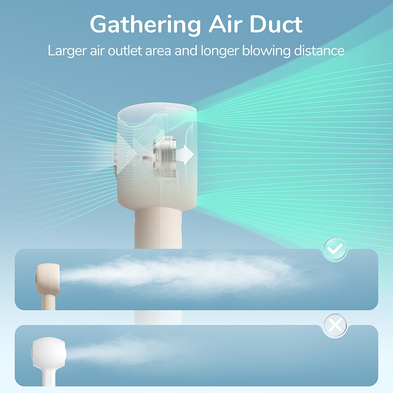 Powerful Wind-Gathering with Air Jet™ & Air Turbo™: Our dual-core technology features an air-expansion system and a precision air-guidance system. With 7 specialized wedge-shaped fan blades working within optimized pressure cavities, it generates a surprisingly strong and focused wind stream from its mini body.