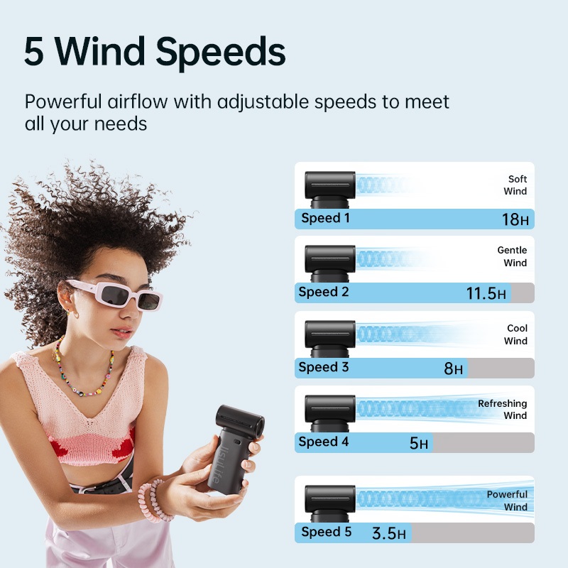 All-Day 15-Hour Endurance: Powered by a reliable 3600mAh battery, the Life9 provides long-lasting cooling from dusk till dawn, making it your perfect companion for daily commutes, travel, or outdoor adventures.