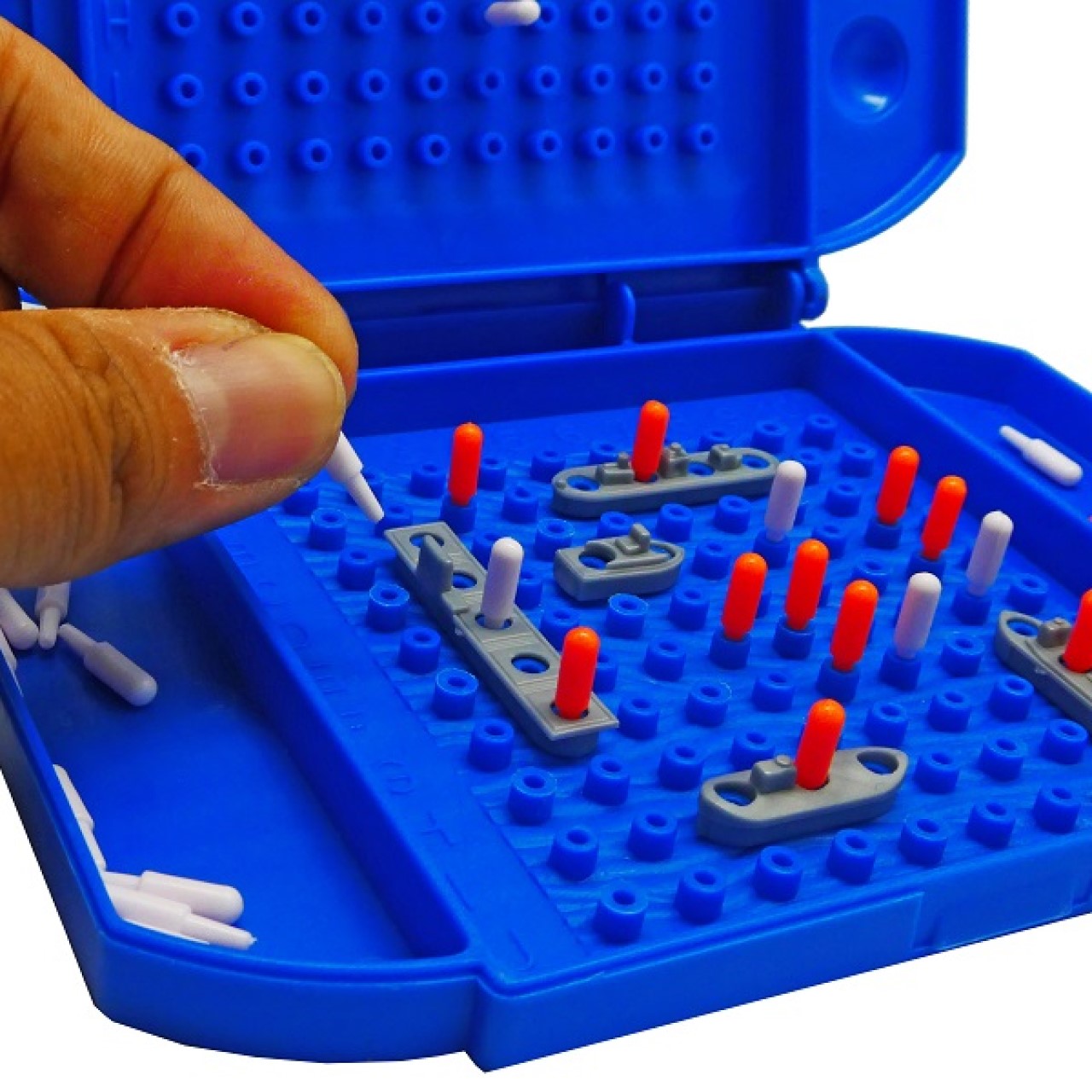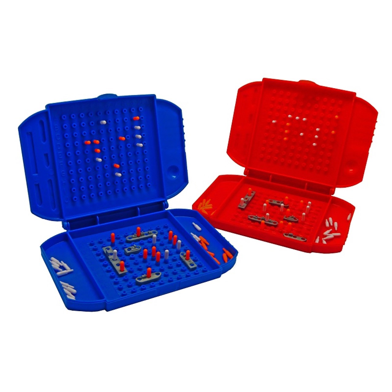 2 game units, 10 ships, red pegs and white pegs.