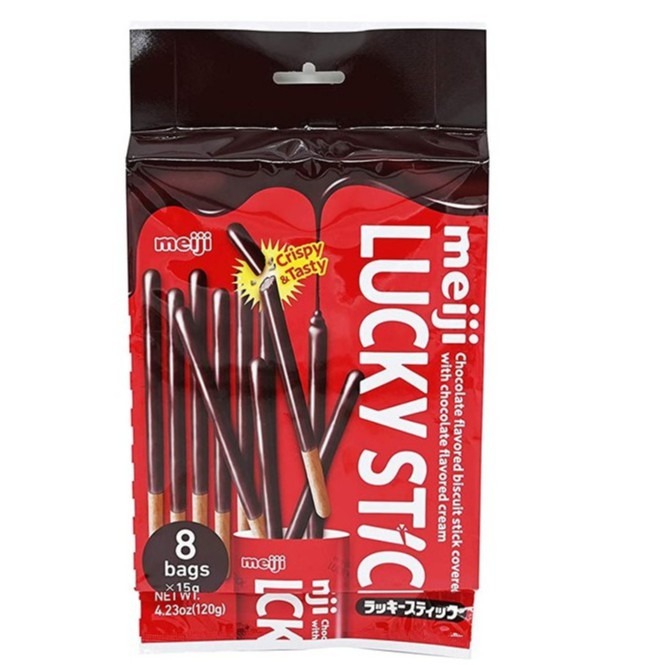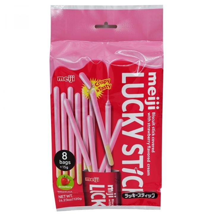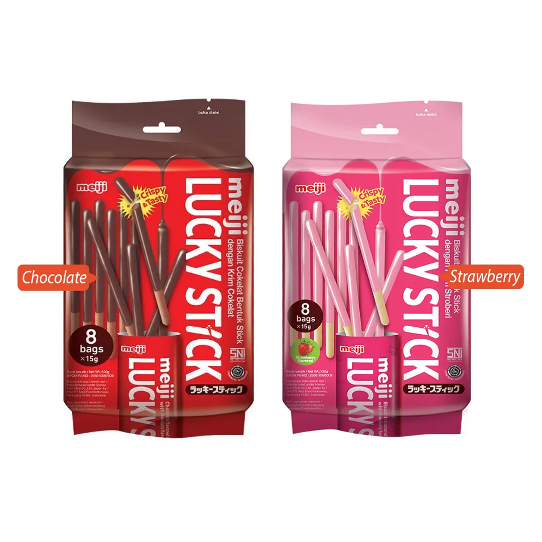 Meiji Lucky Biscuit Stick (Assorted Flavours), 8S X 15G Per Pack Assorted Flavours Selection: Chocolate, Strawberry