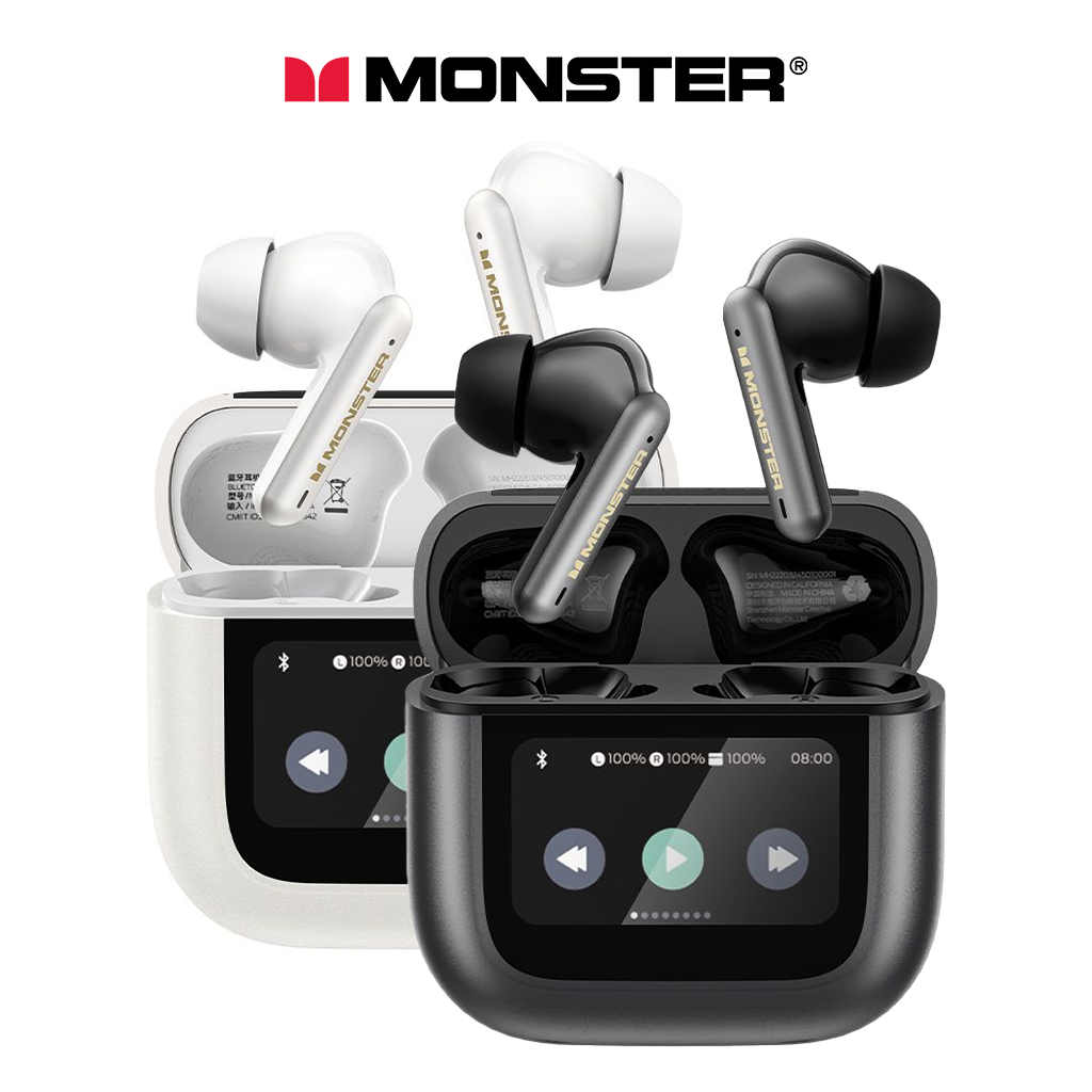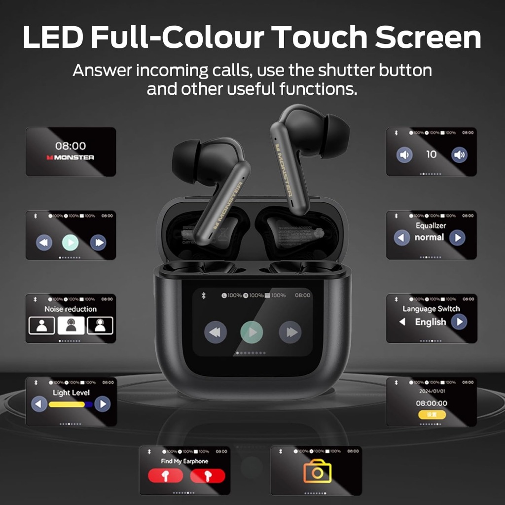 Monster TWS TH300 Wireless Bluetooth 5.4 ANC Noise Cancelling Earbuds with LED Touch Screen Smart Control