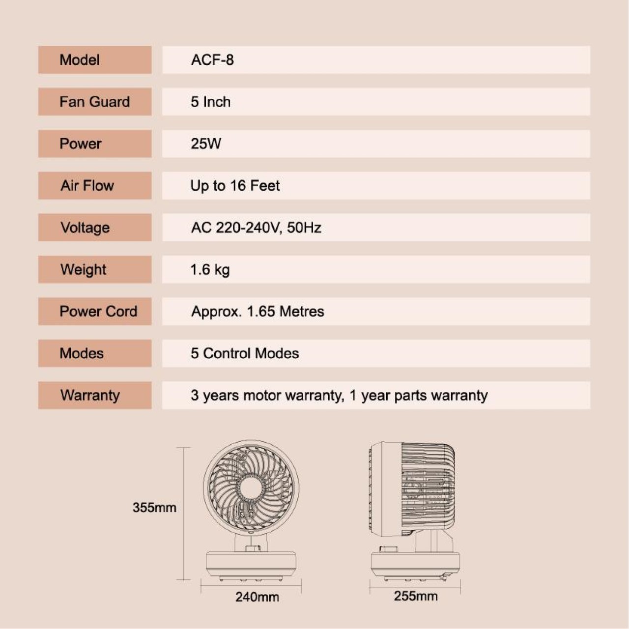 FAN GUARD : 5 INCHES
