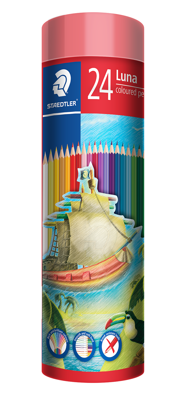 | • Coloured pencil in classic hexagonal shape • Easy to sharpen with all sharpeners • Up to 48 brilliant colours • Coloured pencil Luna round metal tin 24c |