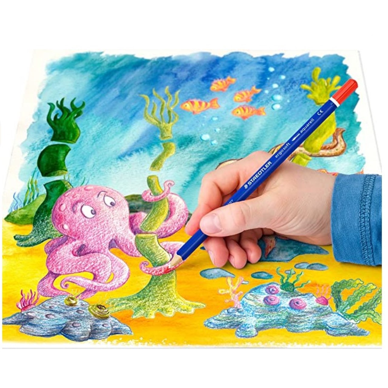 - High-quality coloured pencil in ergonomic triangular shape with watercolour lead