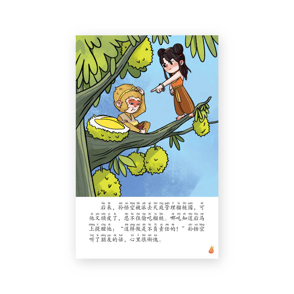 本套哪吒故事系列,并非改编自近年的动画电影,而是以中国传统神话为基础,专为新加坡小学生重新编写而成。故事内容与文字浅显易懂、趣味盎然,目的通过更具童真、更简单的儿童故事,帮助孩子们轻松地从神话人物身上学习正义、勇敢、善良与责任感等优良品德。